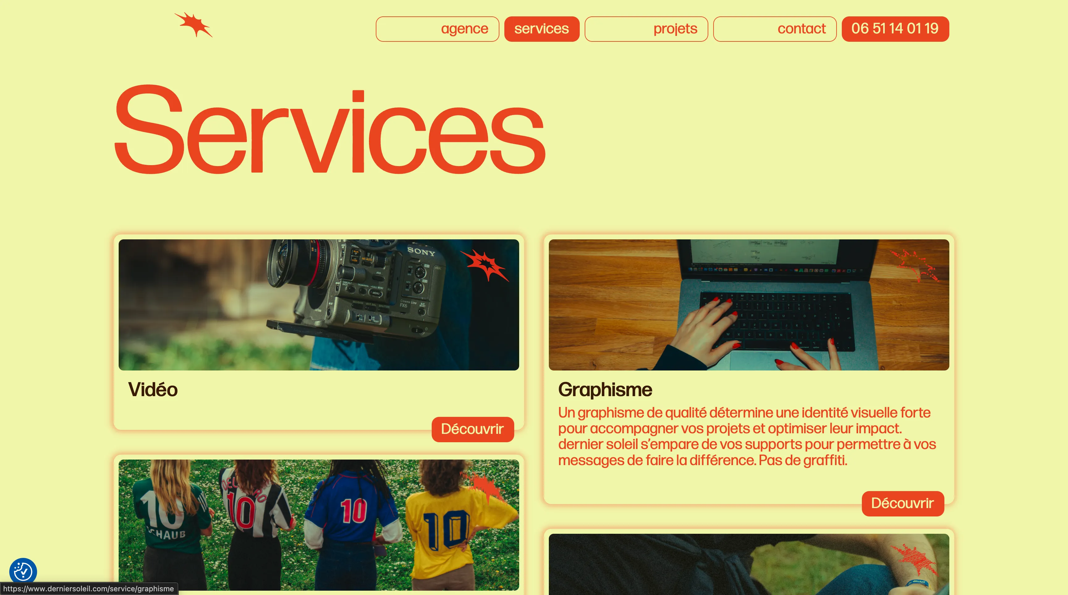 Nancy, automne 2025. Une bande de freelances — graphistes, vidéastes, stratèges, plumes — décide de fédérer ses talents sous une même bannière : Dernier Soleil. Plus qu’une agence de communication, c’est un collectif aux ambitions artistiques affirmées, implanté dans le Grand Est. Leur crédo ? Lier création locale et références universelles. Leur besoin ? Un site web à la hauteur de leur identité.