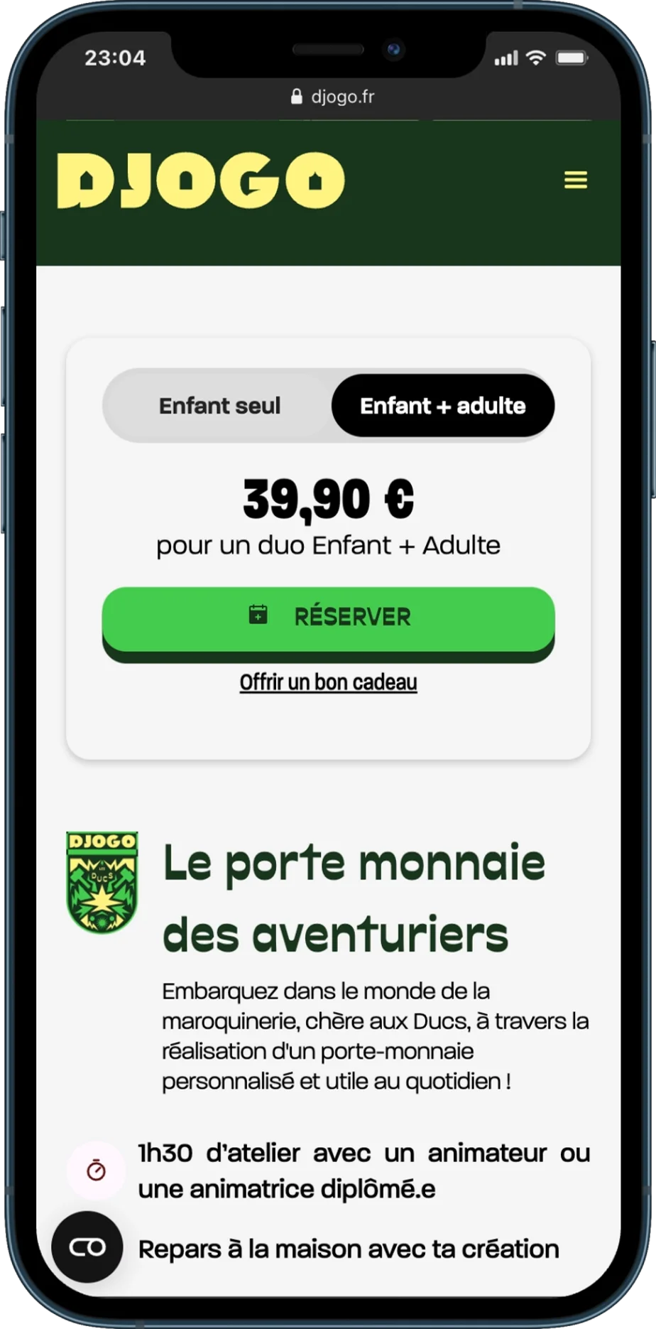 Concrètement, l’internaute navigue sur Djogo, puis réserve son atelier via la boutique Qweekle (avec les bonnes options, le bon langage, et surtout une expérience sans surprise).