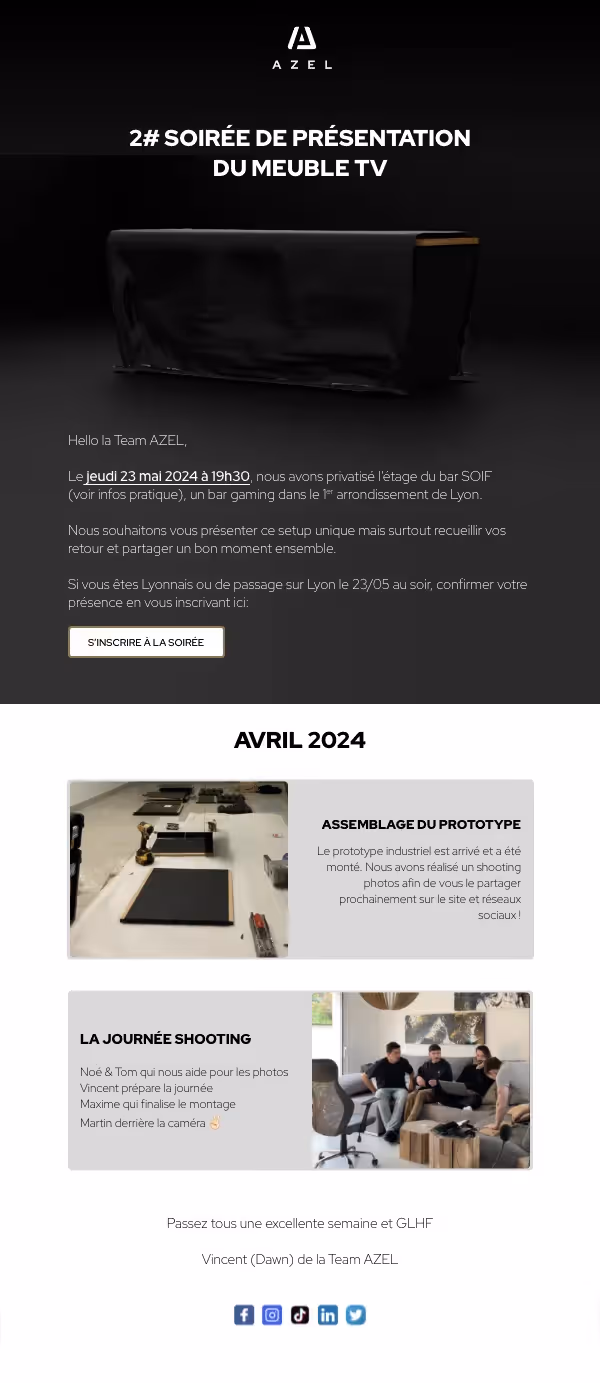 Rythme choisi : un envoi mensuel. Pas plus, pas moins. L’objectif était d’éviter la saturation tout en conservant un lien régulier avec la communauté.